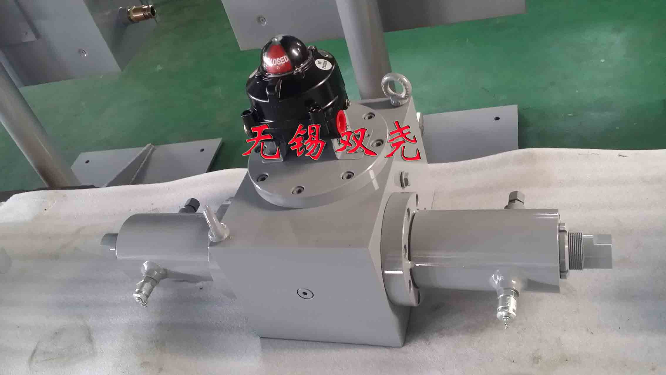 单齿条.法兰式.花键孔输出.摆动油缸(组装车间一角) 摆动缸装旋转行程开关及角度显示(组装车间一角)