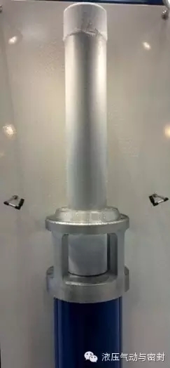 在汉诺威展会上还看到洪格尔公司一个防尘圈的演示做得非常好,我特地拍了一段录像。活塞杆背后是冷冻器,所以过几分钟后,活塞杆上就结了一层冰(图2)。用这个防尘圈,活塞杆一个往复,就干干净净。整个展会期间,每几分钟一个往复,用此证明防尘圈质量过硬。