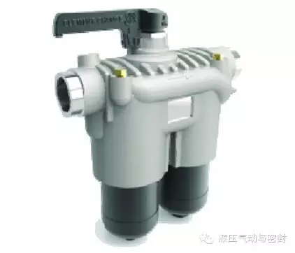 在展会上还看到一个新的双联高压过滤器(图7),雅歌辉托斯做的,在本届PTC也展出了。它的特点是可以不间断工作地更换滤芯。如果一个滤芯拦截了很多污染物,两侧的压差超了,可以用手柄切换,让另一个滤芯工作。这个其实并不新,以前就有。但是切换手柄需要很大的力,因为是高压。雅歌辉托斯通过特殊设计,切换的阀变成套筒转阀形式,不承受压力,所以可以很轻松的扳过来。扳过来以后,这边完全卸荷,就可以轻松地把这个外壳卸下来,更换滤芯。