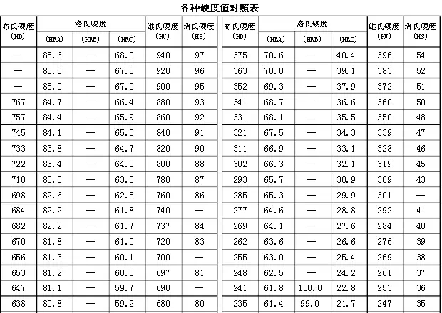 各种硬度值对照 一表全解