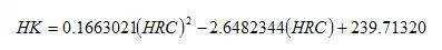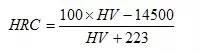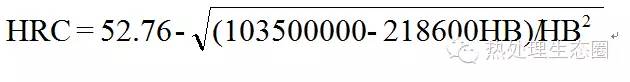 ,本公式与国家标准实验换算值对照,换算式计算结果与标准实验值之误差为±0.1HRC。