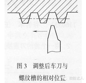 (2)车刀从高速变为低速后要严格对准梯形螺纹槽,操作时要仔细认真,不能马虎。可采用逐步恢复坐标系的方法,即分几次校正车刀,使车刀逐步车削到牙槽底部。
