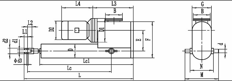5.整体外置式电液推杆(DYTZW型)制造行程在10-600mm范围内(由于油箱容积小,所以制造行程被限