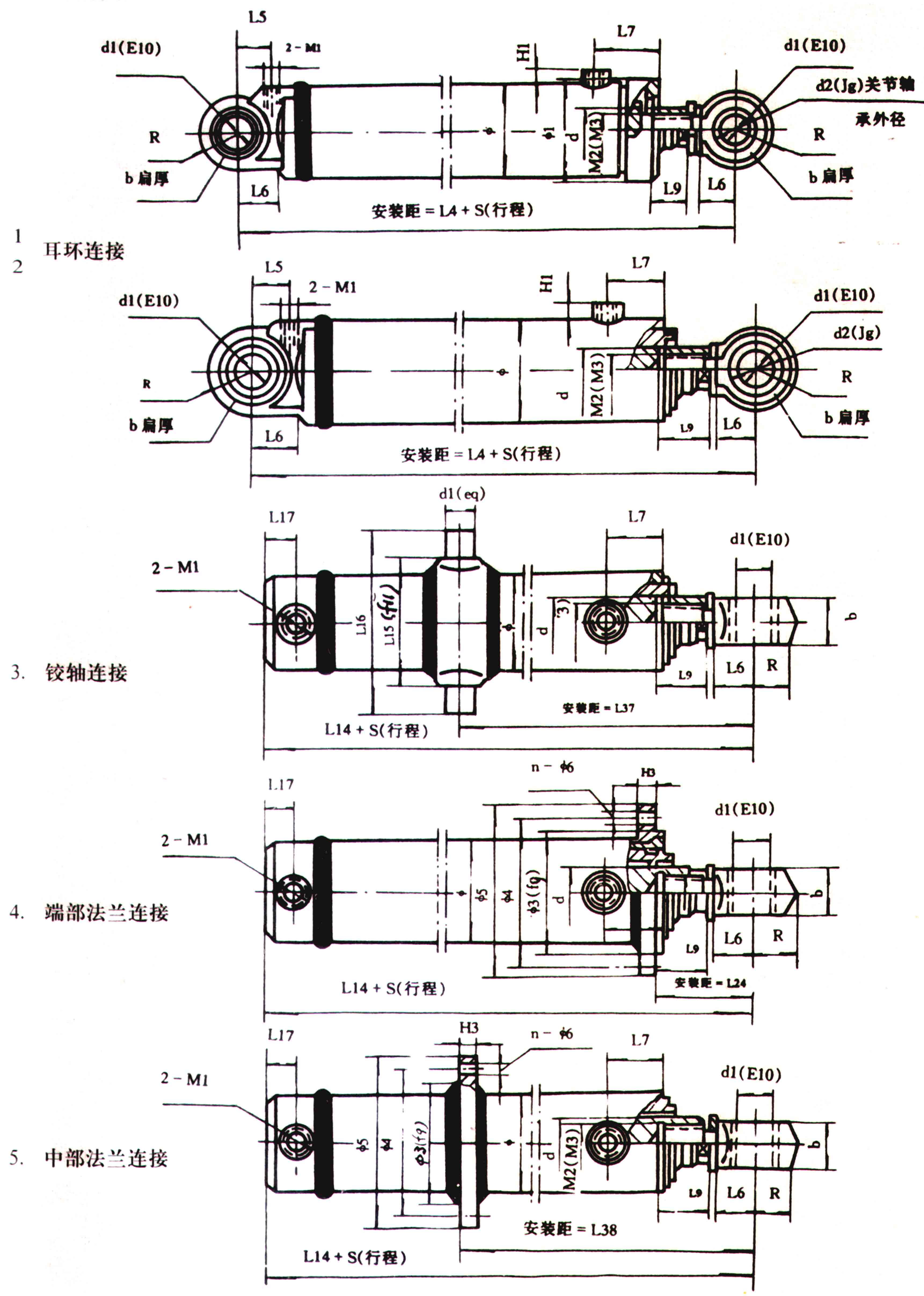 接);4=端部法兰(用于缸径Φ80卡键式连接);5=中部法兰(用于缸径Φ80卡键式连接)