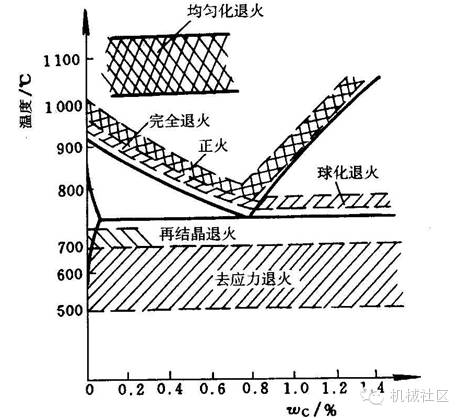 好了,转回来说退火和正火工艺。一般退火工艺分为几种,以下图为参考。