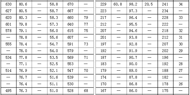 各种硬度值对照 一表全解