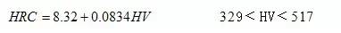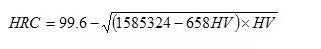,本公式与国家标准实验换算值对照,换算式计算结果与标准实验值之误差为±0.1HRC。