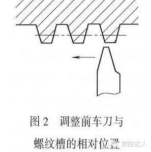 (2)车刀从高速变为低速后要严格对准梯形螺纹槽,操作时要仔细认真,不能马虎。可采用逐步恢复坐标系的方法,即分几次校正车刀,使车刀逐步车削到牙槽底部。